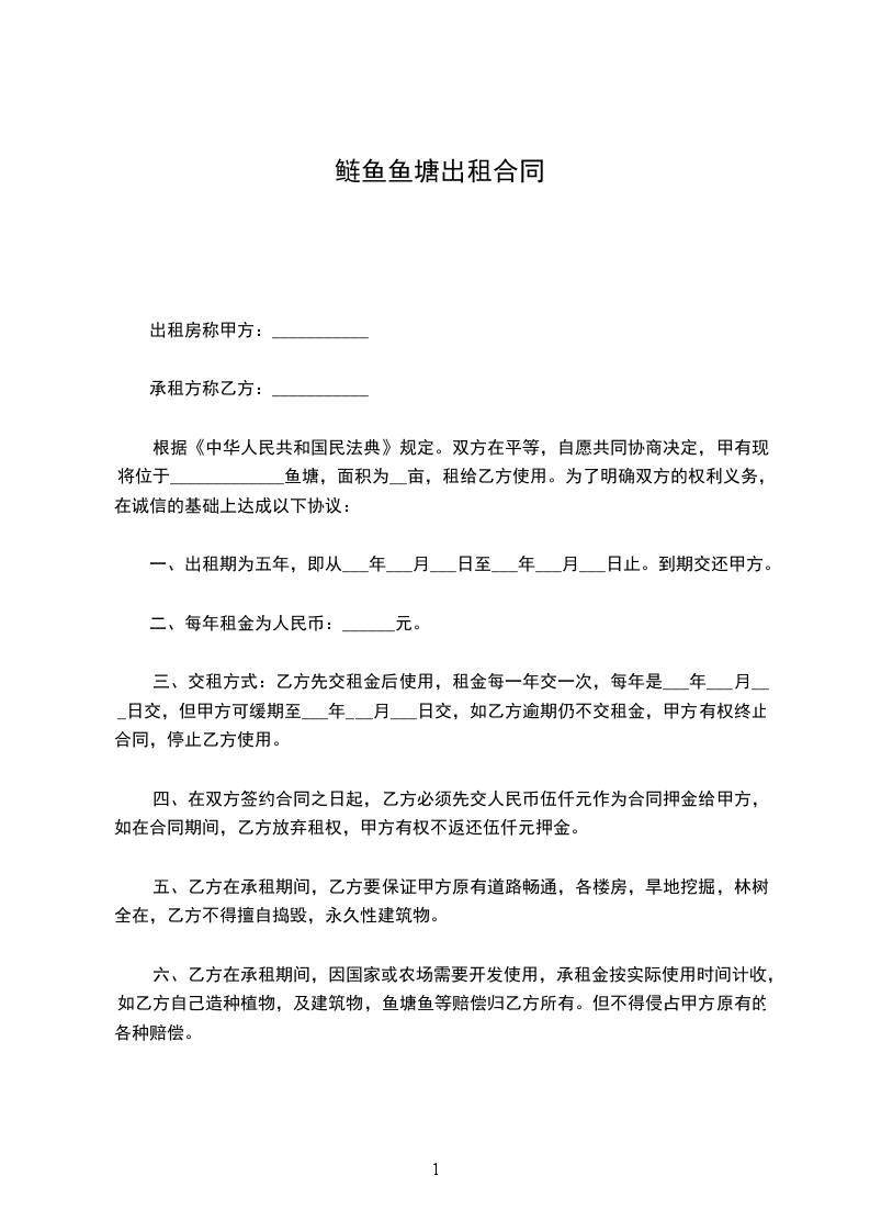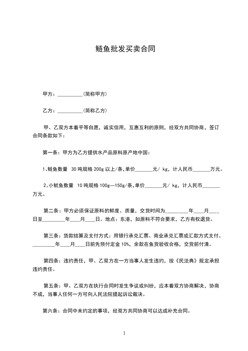 三、交货期限、地点和方式合同有效期________年,甲方接到乙方电话通知后3天内备货,鲢鱼由乙方自行前往甲方养殖基地提货,并自行负责运输。