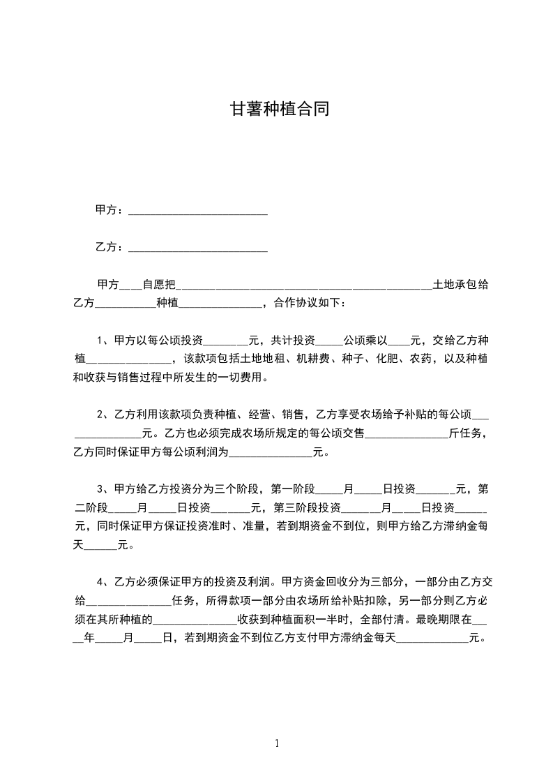根据《中华人民共和国民法典》及其他有关法律法规的规定,甲乙双方在平等、自愿、公平、诚实信用的基础上,就甘薯种植收购有关事宜达成如下协议。