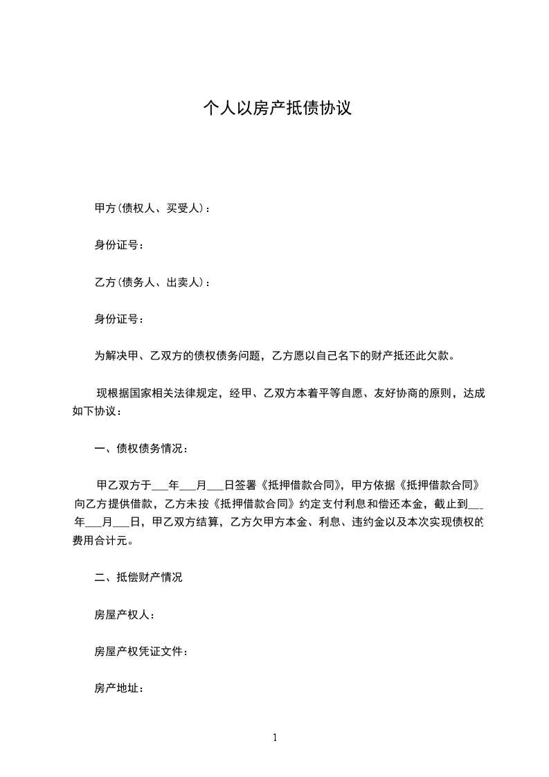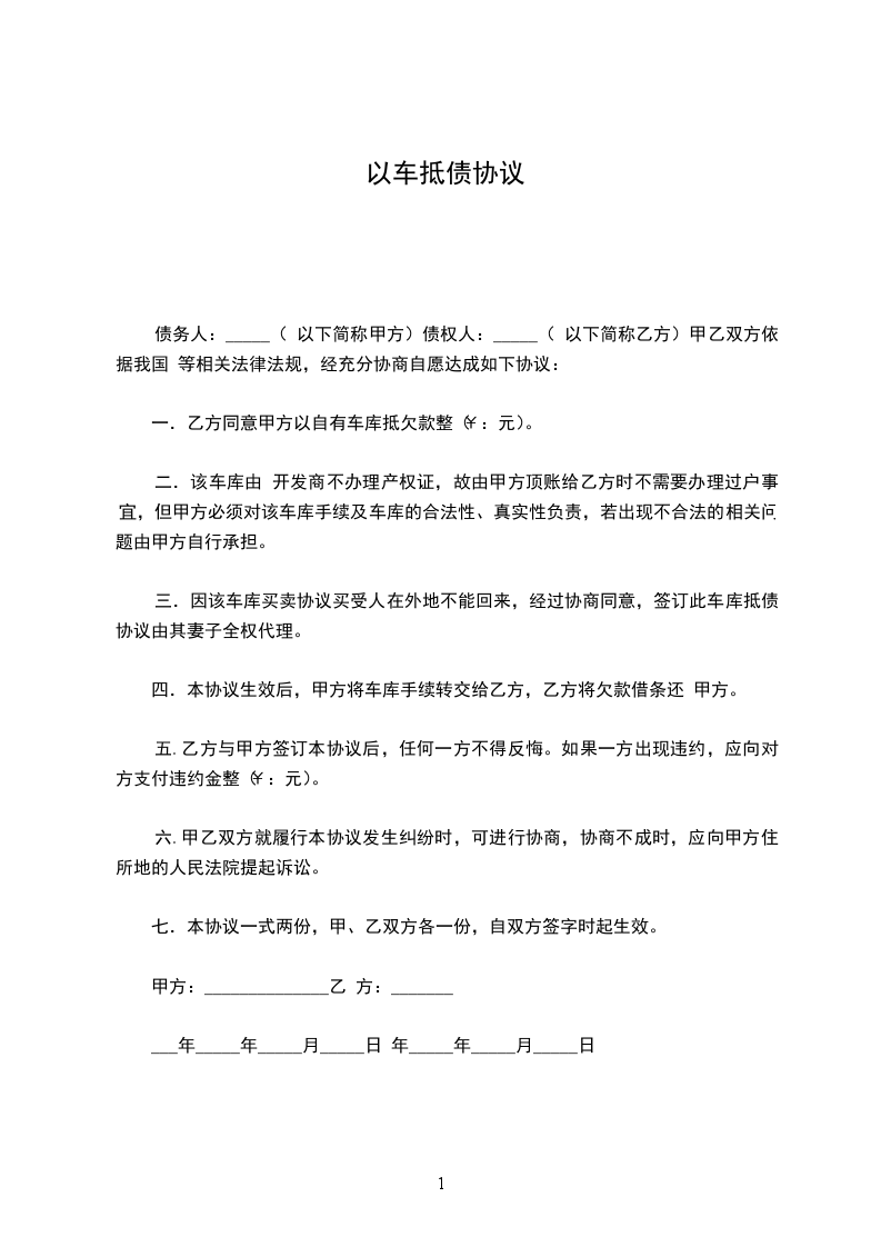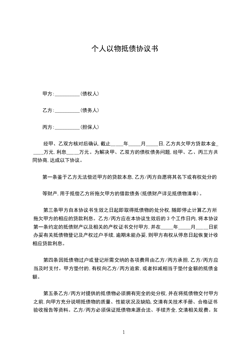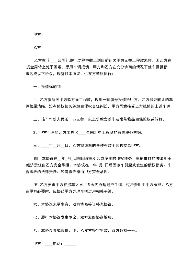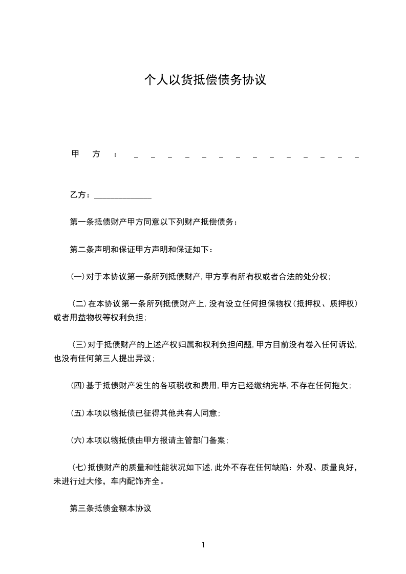 第一条抵债财产甲方同意以下列财产抵偿债务: