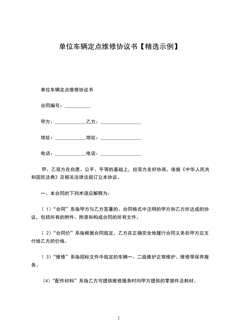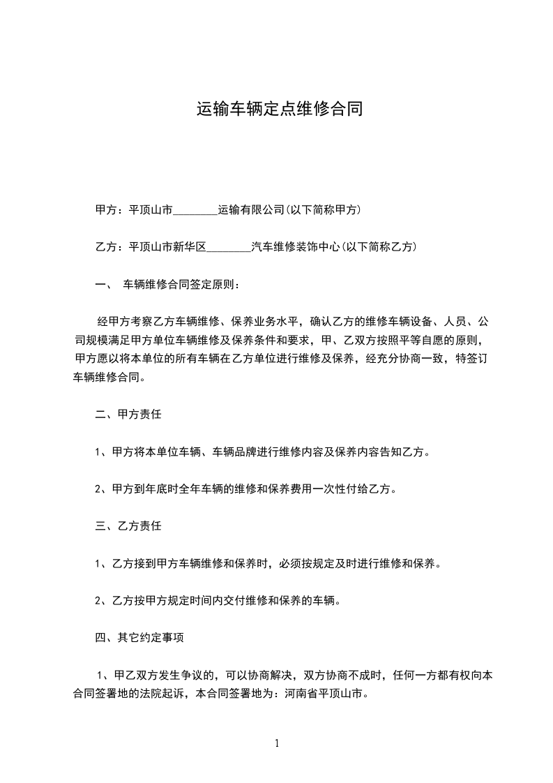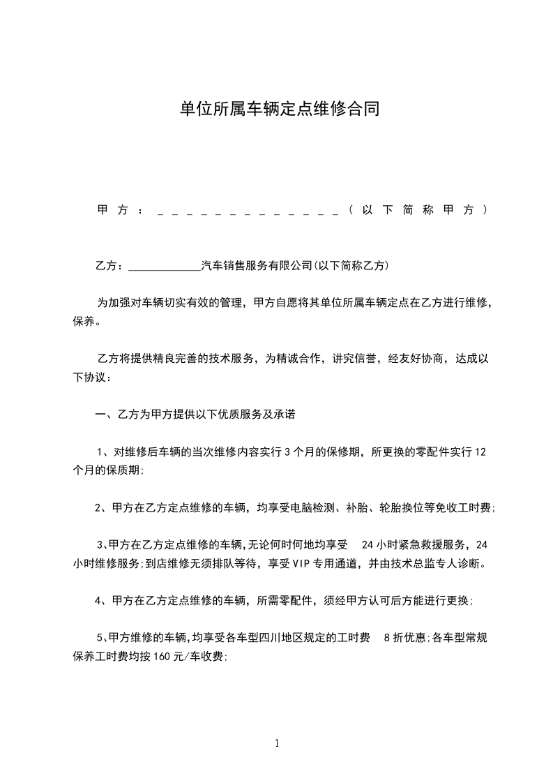 为加强对车辆切实有效的管理,甲方自愿将其单位所属车辆定点在乙方进行维修,保养。