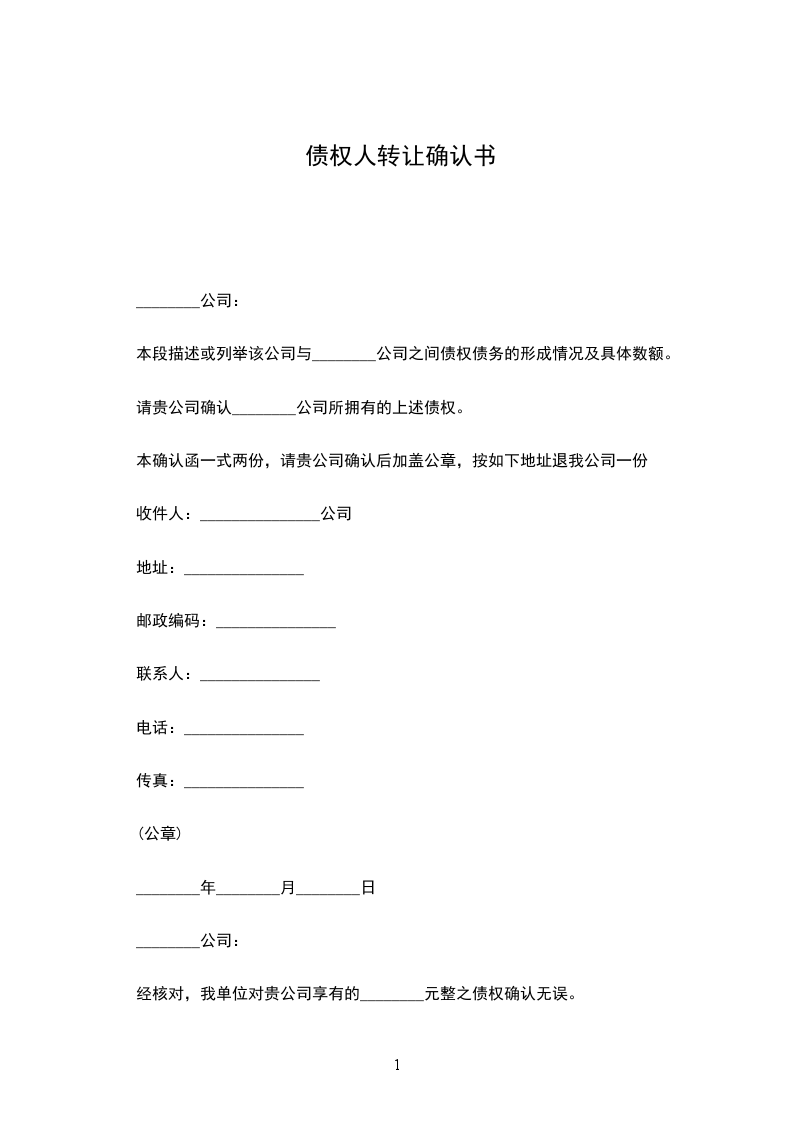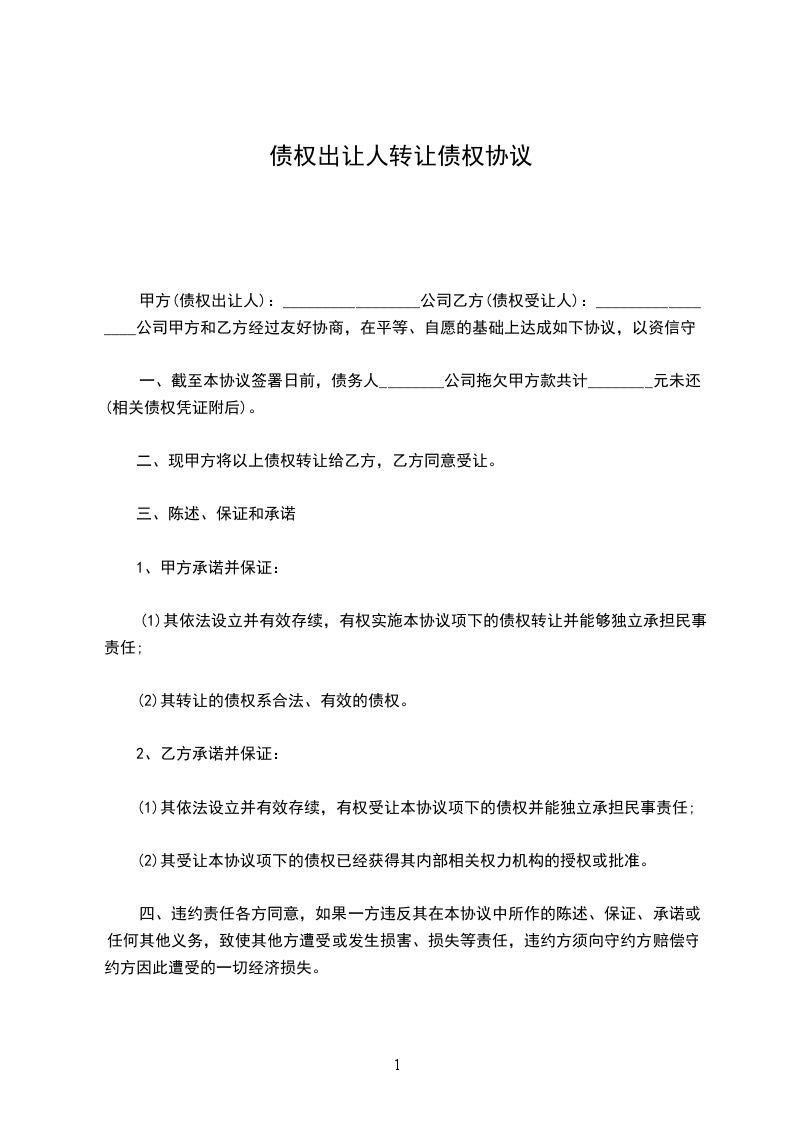 甲方(债权出让人):_________________公司乙方(债权受让人):_________________公司甲方和乙方经过友好协商,在平等、自愿的基础上达成如下协议,以资信守: