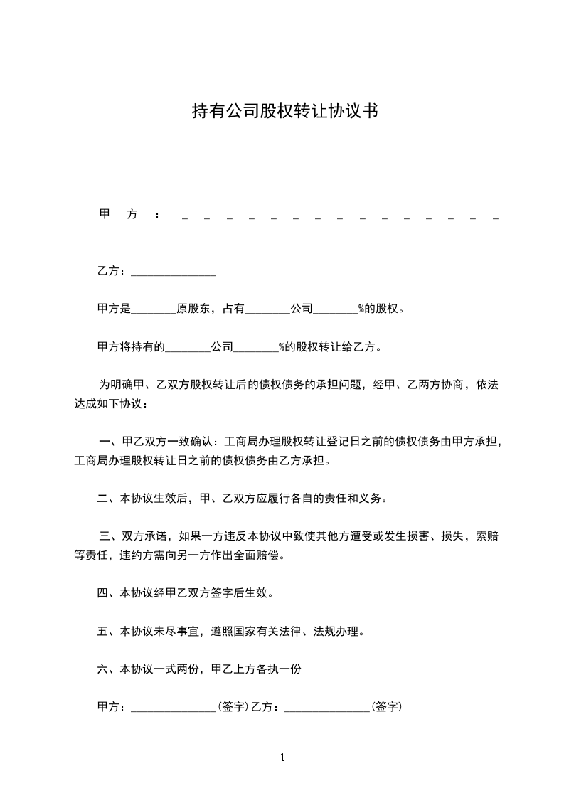 为明确甲、乙双方股权转让后的债权债务的承担问题,经甲、乙两方协商,依法达成如下协议: