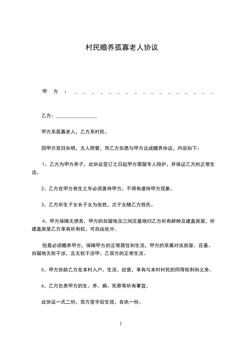 甲方系孤寡老人,乙方系村民。