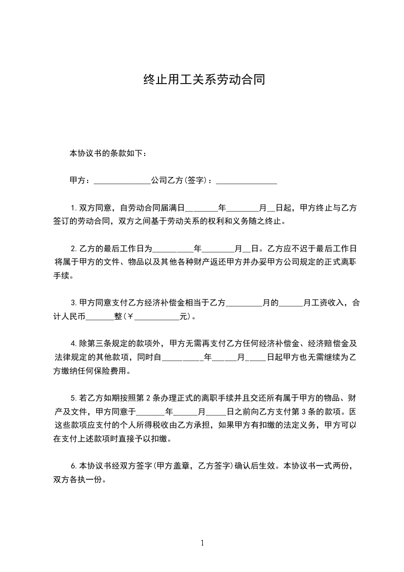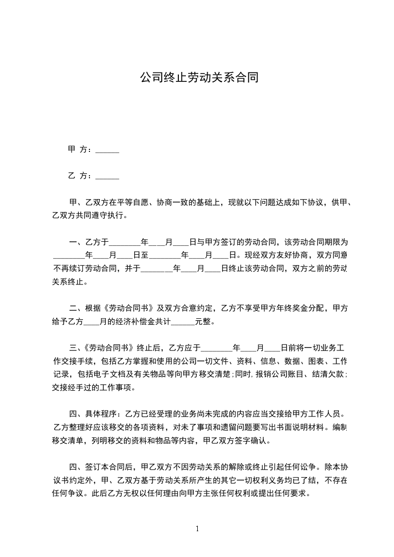 经双方协商一致同意终止双方之间的劳动合同关系,达成协议如下: