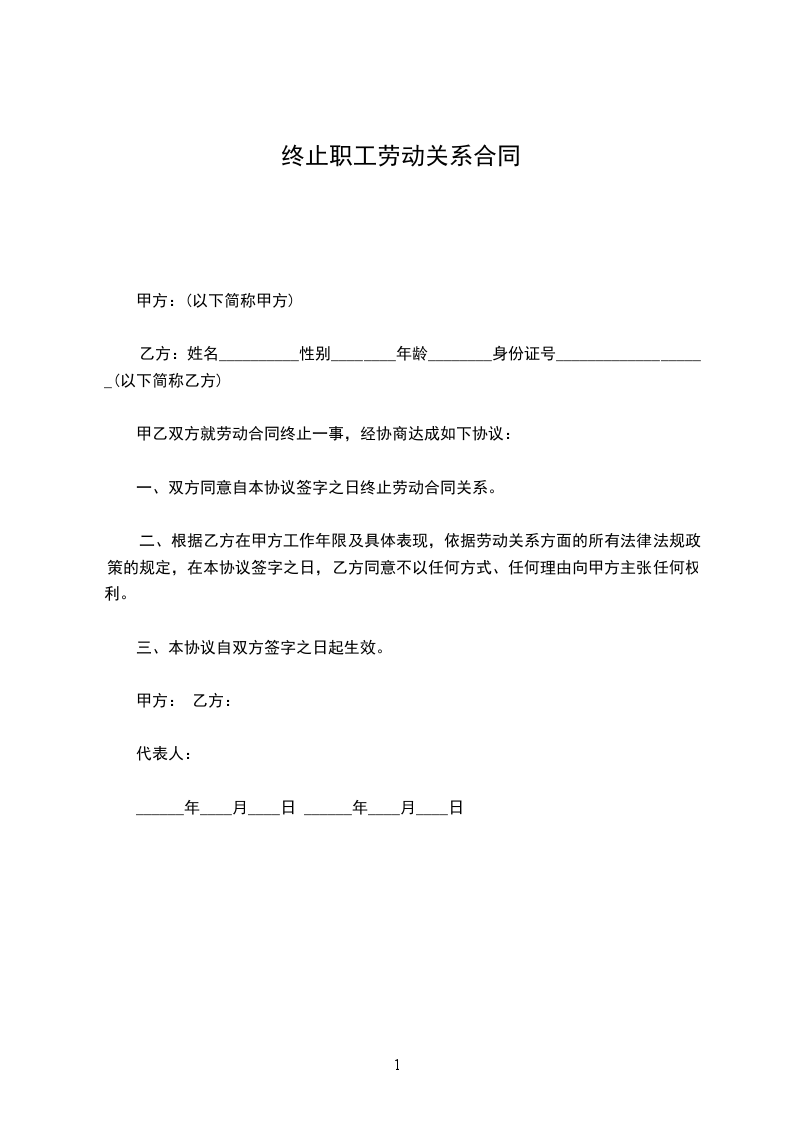 一、双方劳动合同关系自 年 月 日起解除。