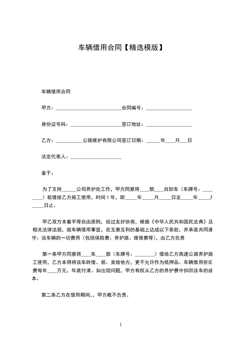 鉴于乙方因[具体借用事由]需要,向甲方借用车辆,经双方友好协商,达成如下协议:
