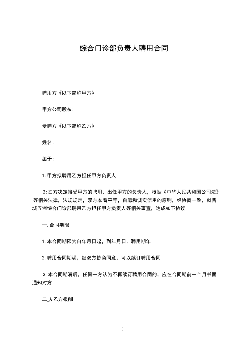 1. 在乙方担任甲方诊所负责人期间,因诊所经营管理活动产生的一切法律责任、经济责任、医疗纠纷责任等,均由甲方承担,与乙方个人无关。