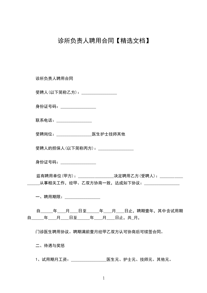 1. 本协议自双方签字(或盖章)之日起生效,有效期至乙方不再担任诊所负责人之日止。