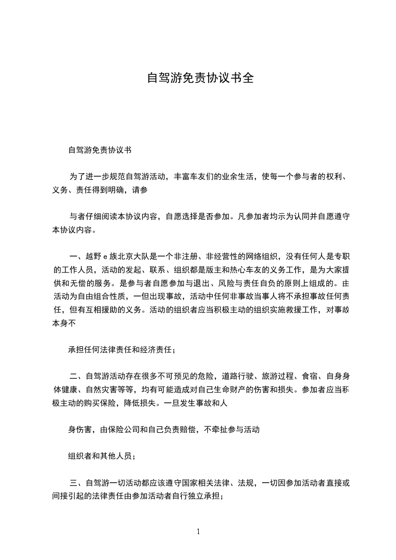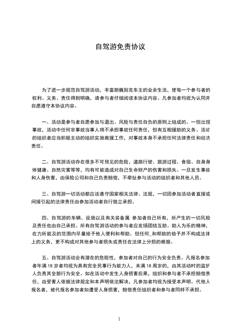 篇1自驾拼车免责协议