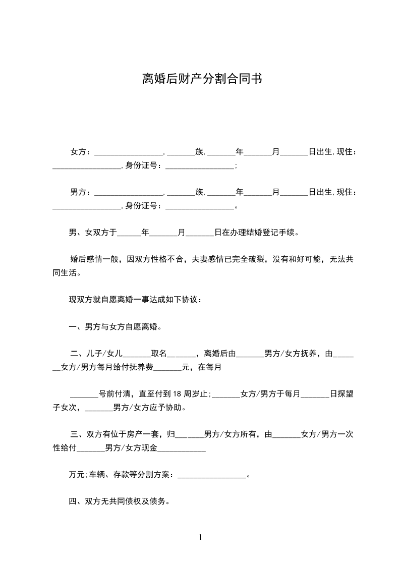 因双方性格不合无法共同生活,夫妻感情完全破裂,已无和好可能,现经夫妻双方自愿协商一致,对有关事项,依相关规定,达成如下协议: