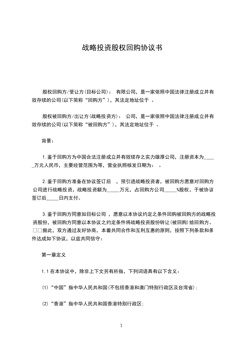 股权回购价格为甲方的投资本金加上按照______%/年的利率计算的利息。