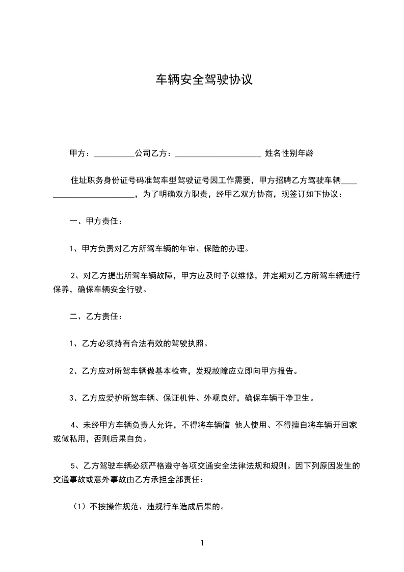1、乙方应向甲方提供安全设备完整、技术状况良好、各种有效证件齐全的正常运行车辆。