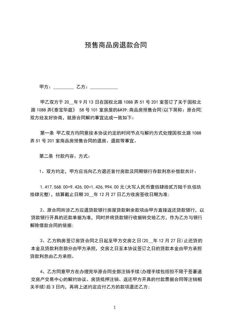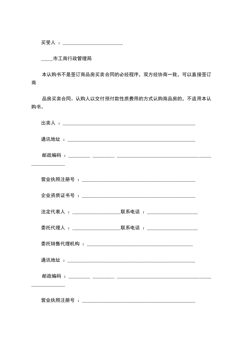 一、乙方于__________年_____月_____日购买甲方开发的预售商品房:_______________小区_____幢(栋)_____单元_____层_____号房(下称该房),建筑面积__________平方米,单价:__________,总价:__________,并网上签订了购房合同,合同备案编号:________。