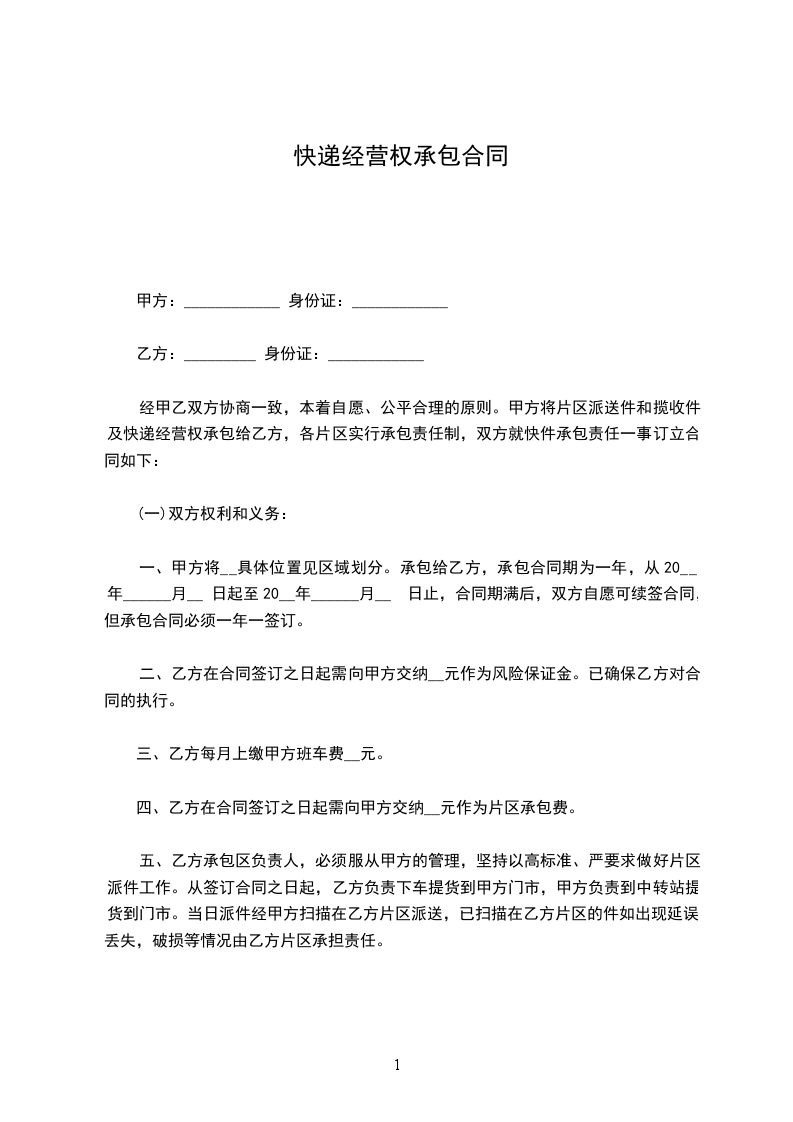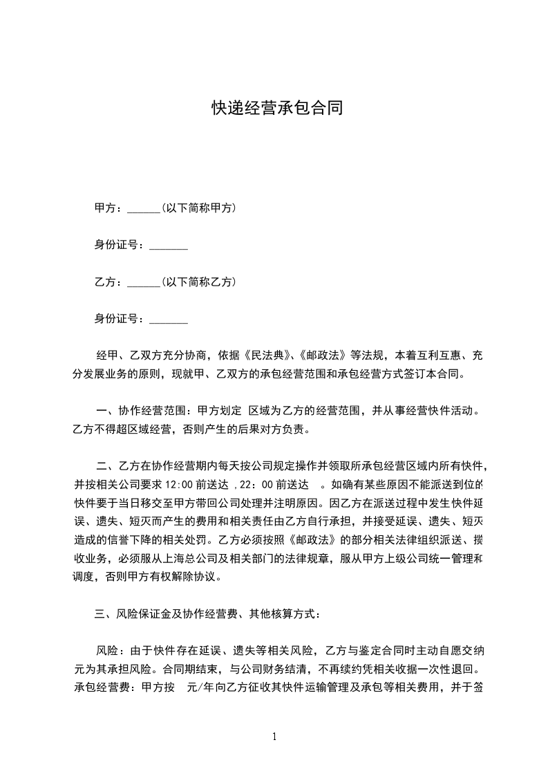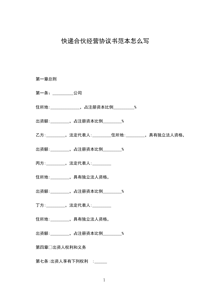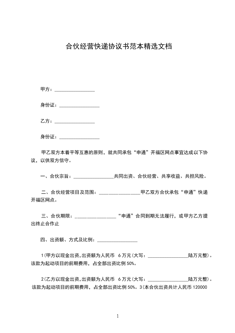 篇1快递合伙经营协议书