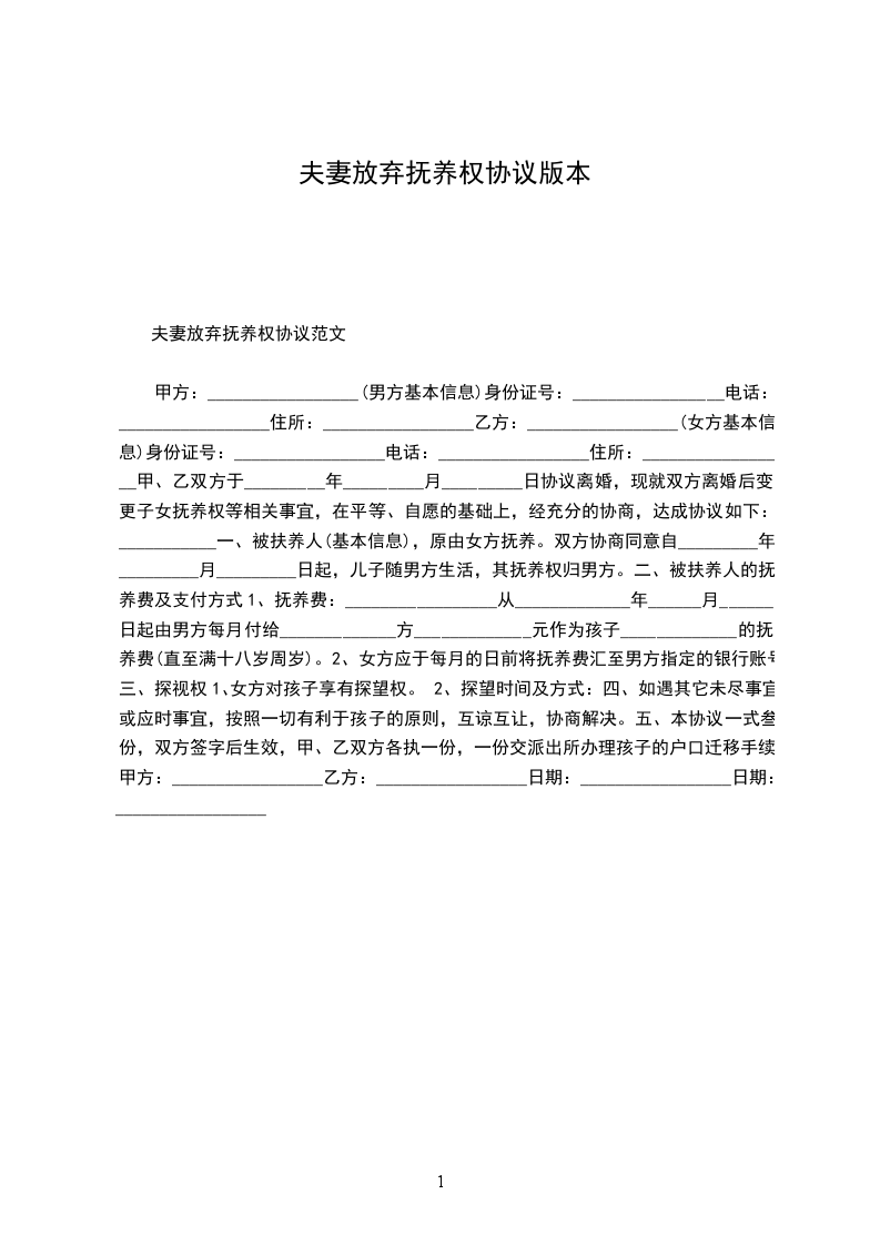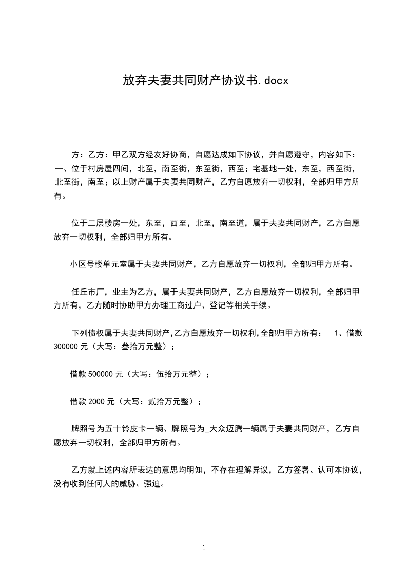 篇1婚内放弃夫妻共同财产协议