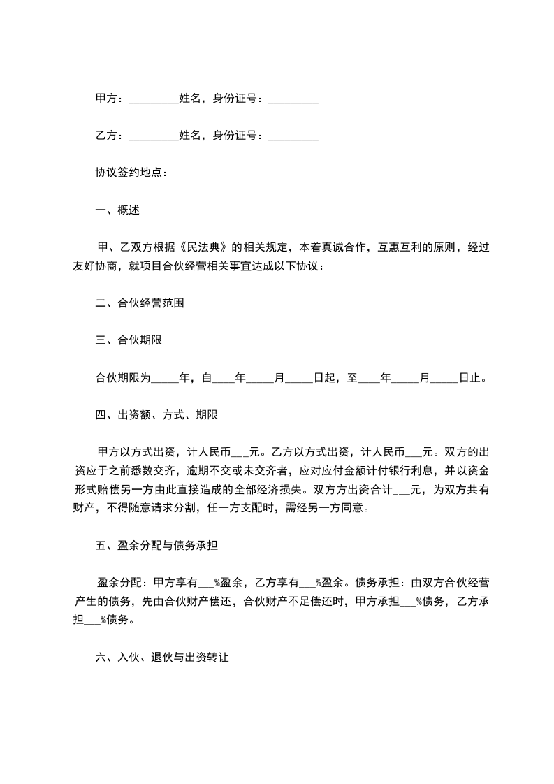 合伙人:__________________________乙(姓名),内容同上(列出合伙人的基本情况)