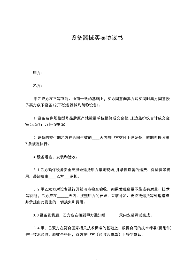 2.设备的交付期乙方在合同生效的____天内向甲方交付上述设备,逾期将按照第7条规定执行。