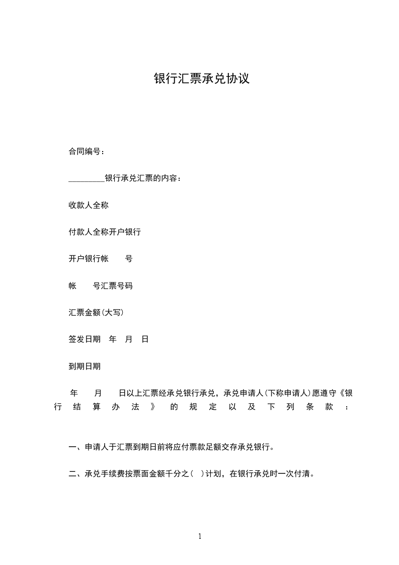 以上汇票经承兑银行承兑,承兑申请人(下称申请人)愿遵守《银行结算办法》的规定以及下列条款: