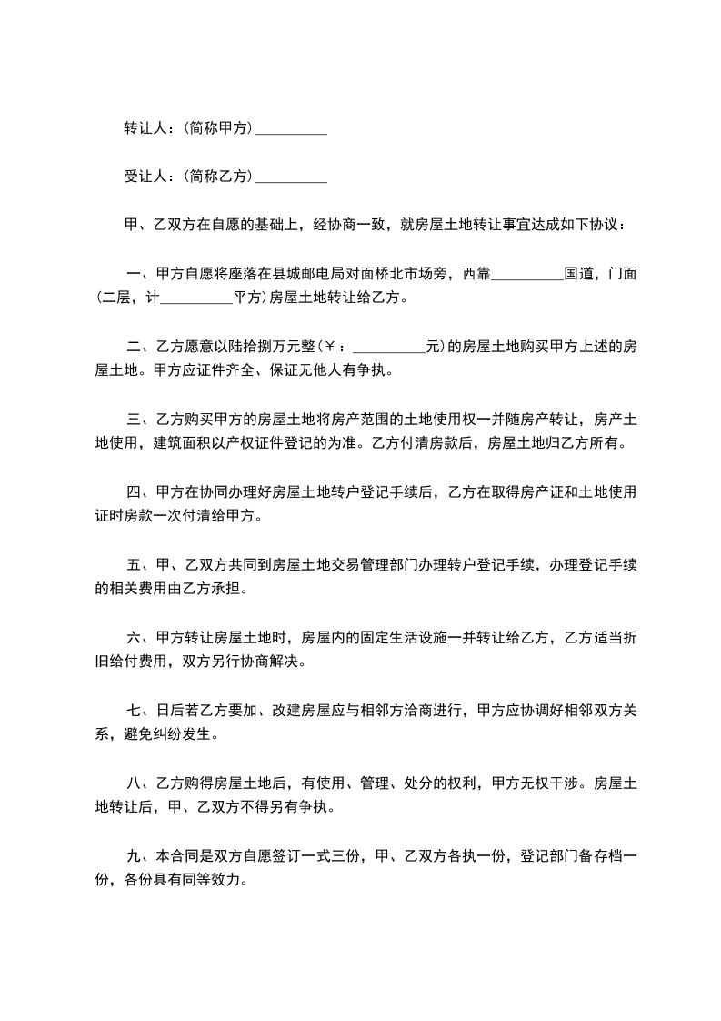 第二条上述房产的交易价格为:单价:人民币____元平方米,总价:人民币___万元整(大写:__拾__万__仟__佰__拾__元整)。