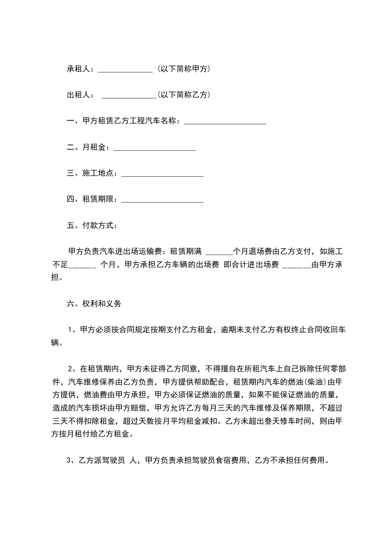 三、租用期定为____,自____年____月____日起至____年____月____日止,承租方如果继续使用或停用应在5日前向出租方提出协商,否则按合同规定照收租费或按合同期限将车调回。