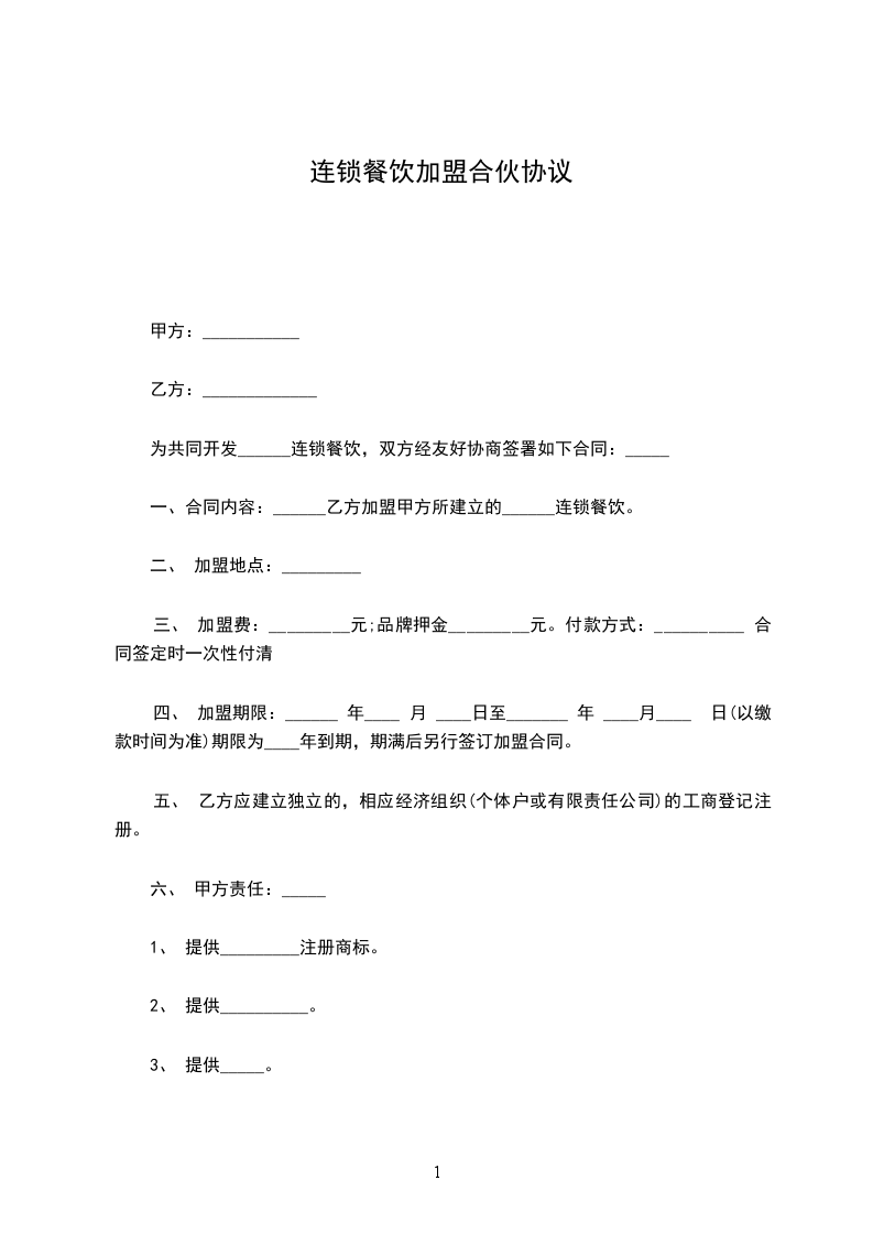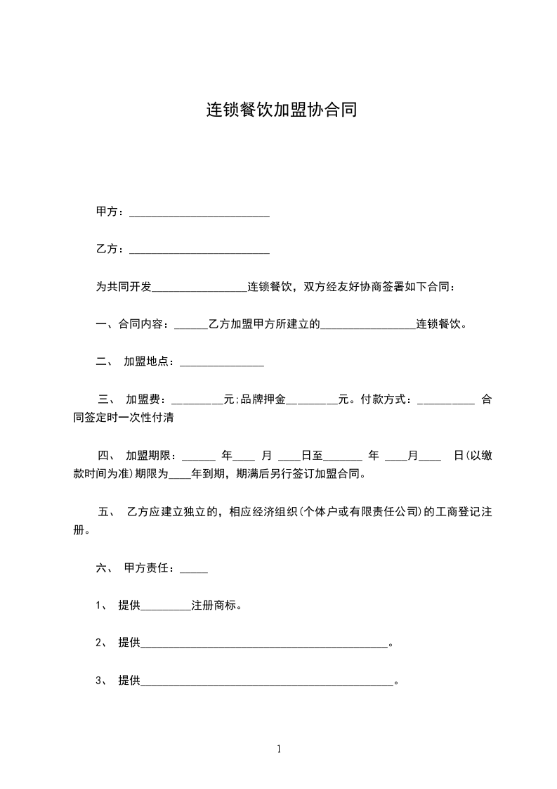 篇1餐饮连锁加盟协议