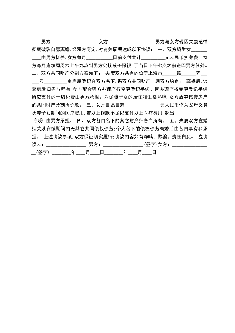男方签字: 女方签字: