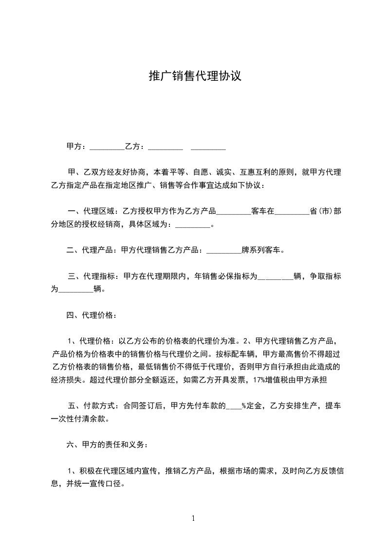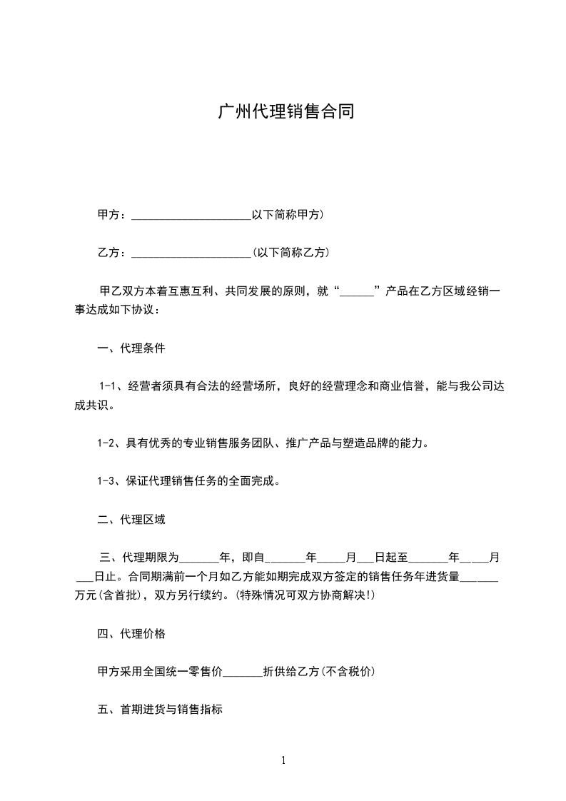 三、代理期限为_______年,即自_______年_____月___日起至_______年_____月___日止。合同期满前一个月如乙方能如期完成双方签定的销售任务年进货量_______万元(含首批),双方另行续约。(特殊情况可双方协商解决!)