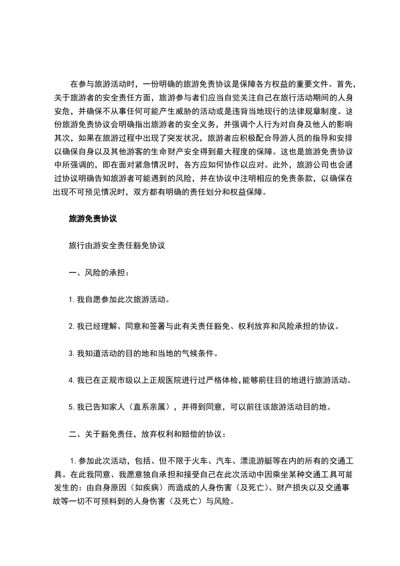 拼车旅游时,为明确各方责任与权益,一份免责协议至关重要。它能清晰界定在行程中若出现意外、纠纷等情况,各方应承担的责任范围。签署此协议,可让拼车参与者安心出行,避免后续可能产生的诸多麻烦与争议,保障旅游的顺利与安全。