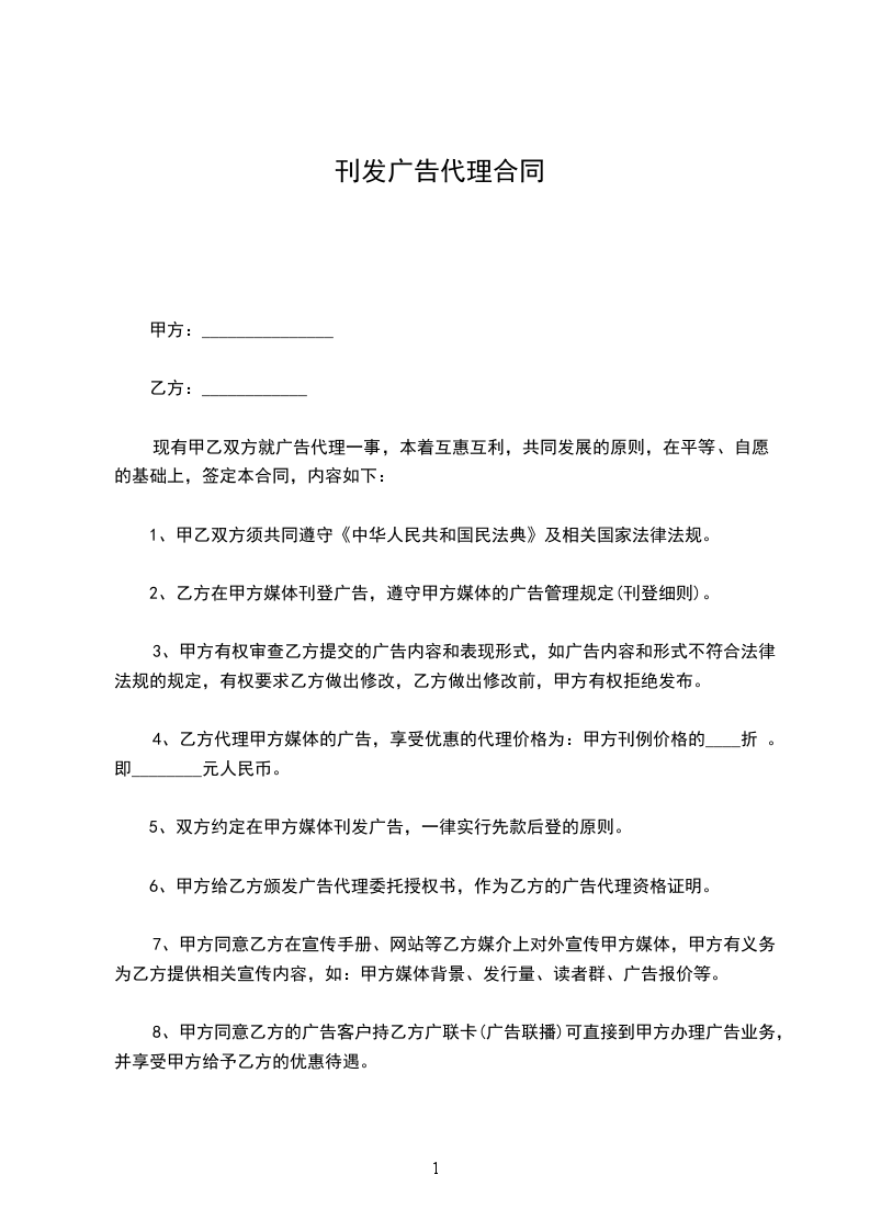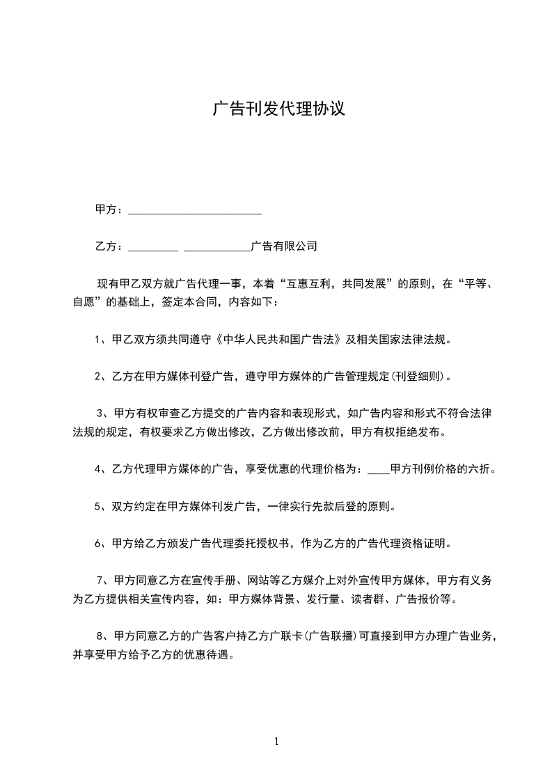 乙方可自行在全国征地区广告代理,乙方所征订的广告或者软文广告必须符合中国现行的《广告法》及相关的法律,法规,如有歧义时甲方有权利删减或不与刊登;