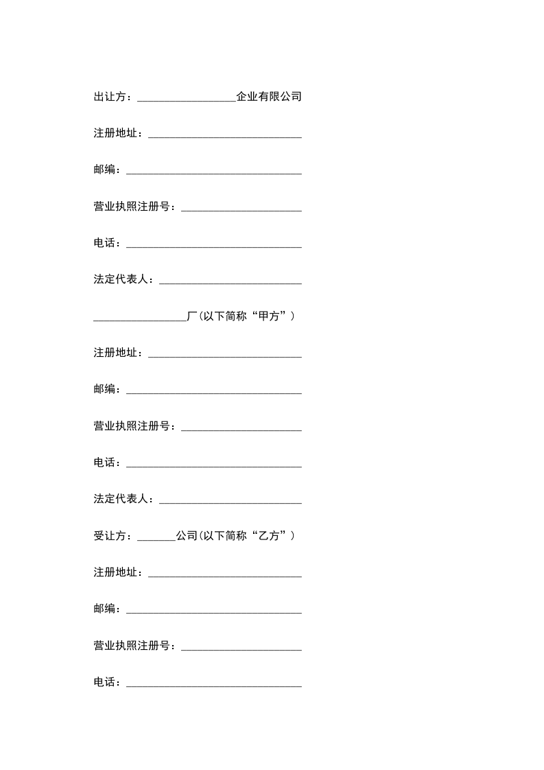 出让方:__________________企业有限公司