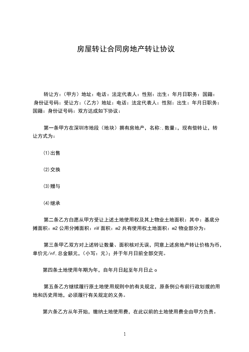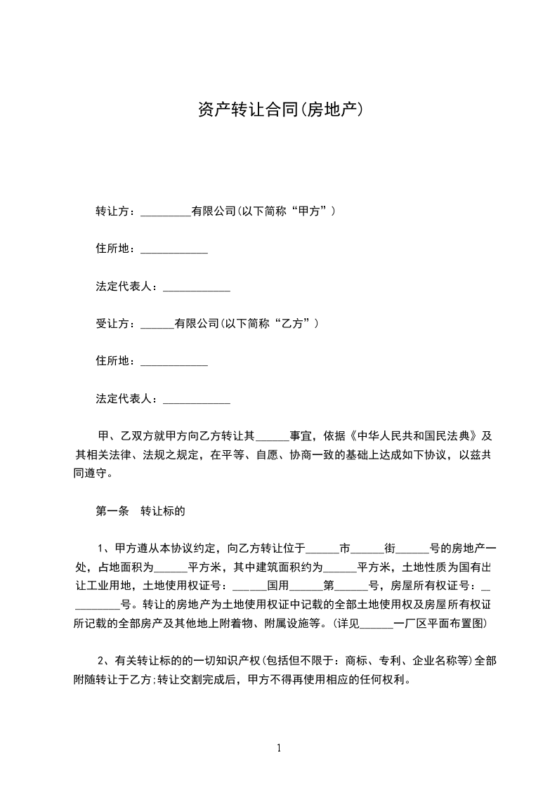 4.附件包括:所转让的上海________厂厂区平面图、房地产权证复印件、双方营业执照、企业结构代码证。