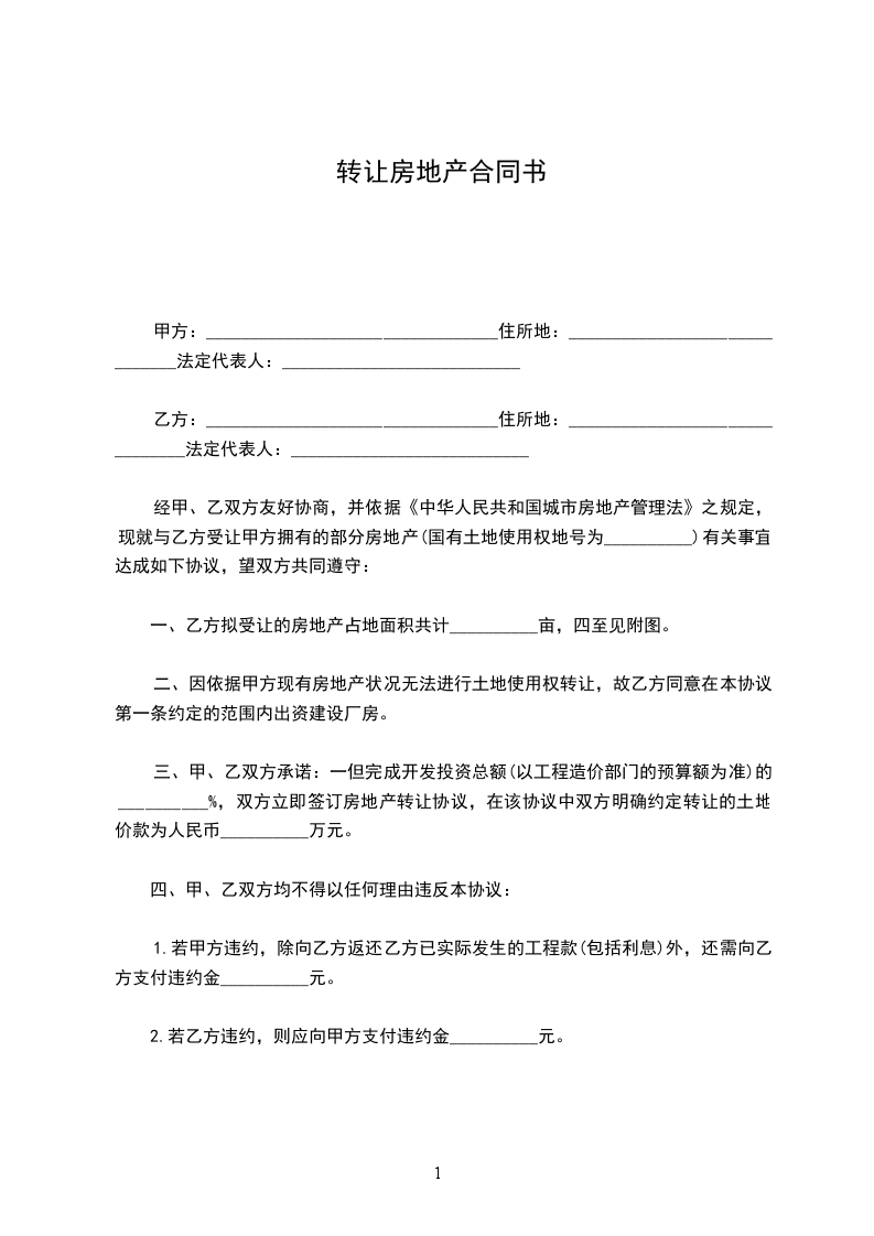 1.甲、乙双方协商一致,确定上海________厂全部房地产权的转让价为人民币________________整(¥________________万元)。