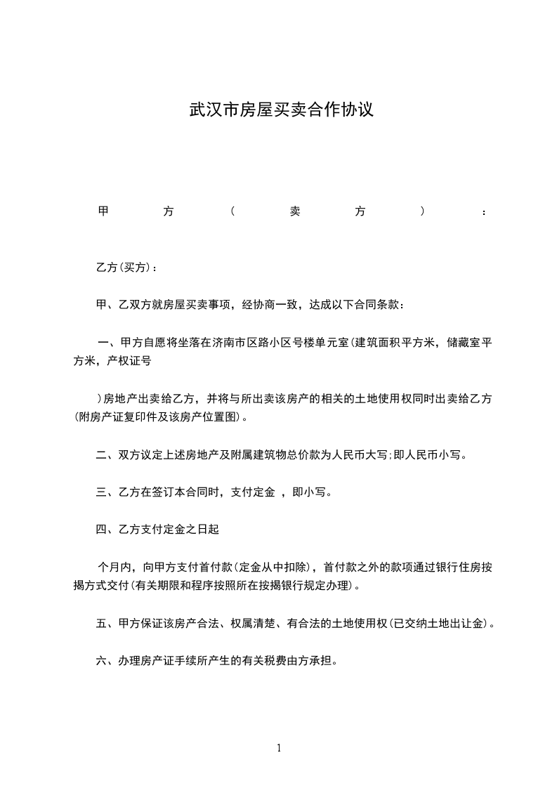 一、甲方自愿将坐落在济南市区路小区号楼单元室(建筑面积平方米,储藏室平方米,产权证号
