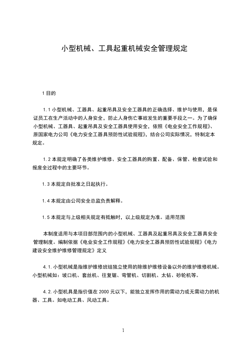 中小型机械的操作人员必须按规定做到“定人定机”和持证操作,严禁违章和无证操作,严禁不懂电气、机械设备的人员擅自操作使用电气、机械设备。