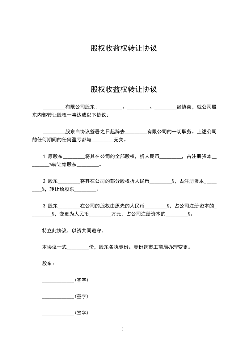 1.原股东_________将其在公司的全部股权,折人民币_________,占注册资本_________%转让给股东_________。