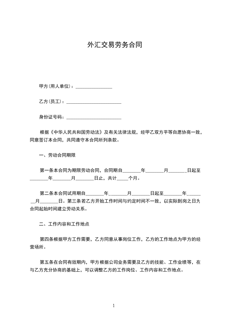 1. 甲方委托乙方按照本协议约定,运用甲方提供的资金进行外汇交易操作,以实现资金的增值。
