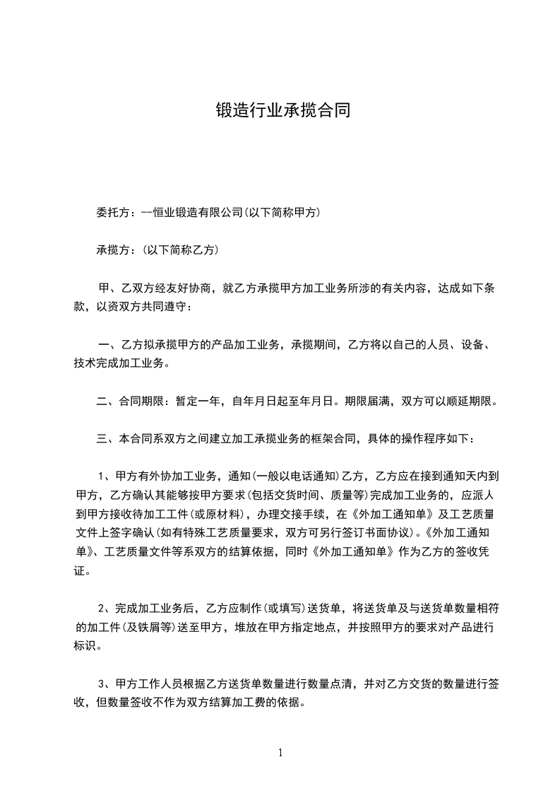 甲方:---市恒业锻造有限公司 乙方: