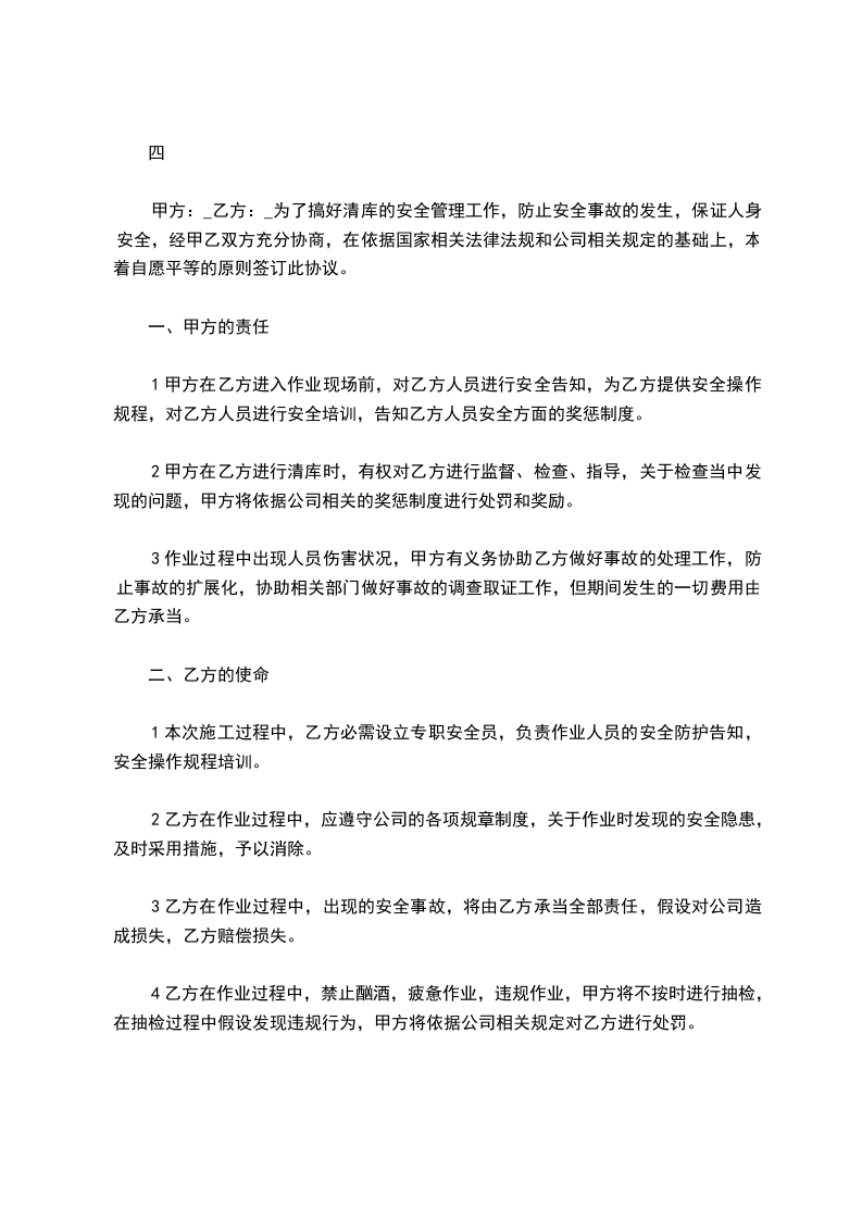 - 甲方应按照乙方的要求和作业计划进行作业,不得擅自更改作业内容或扩大作业范围。
