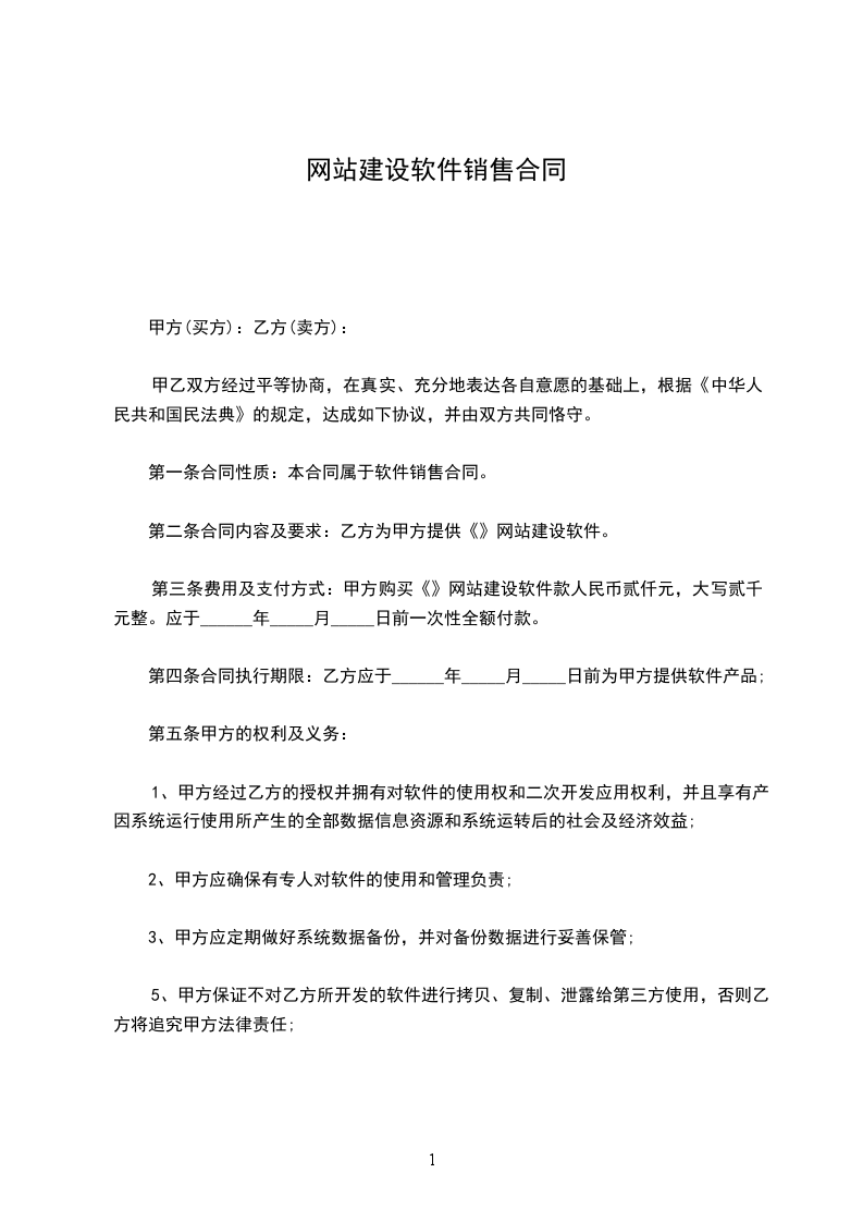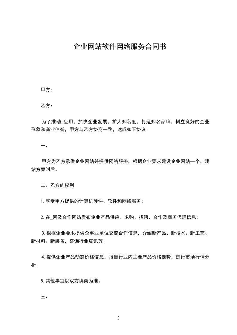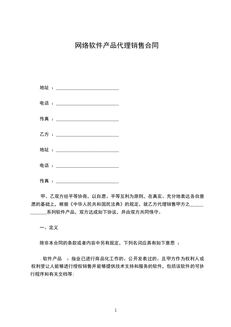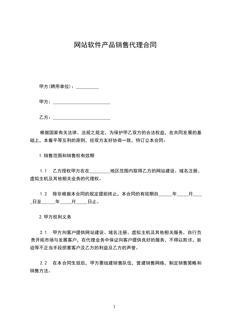 1.1 乙方授权甲方在在_________地区范围内取得乙方的网站建设、域名注册、虚拟主机及其他相关业务的代理权。