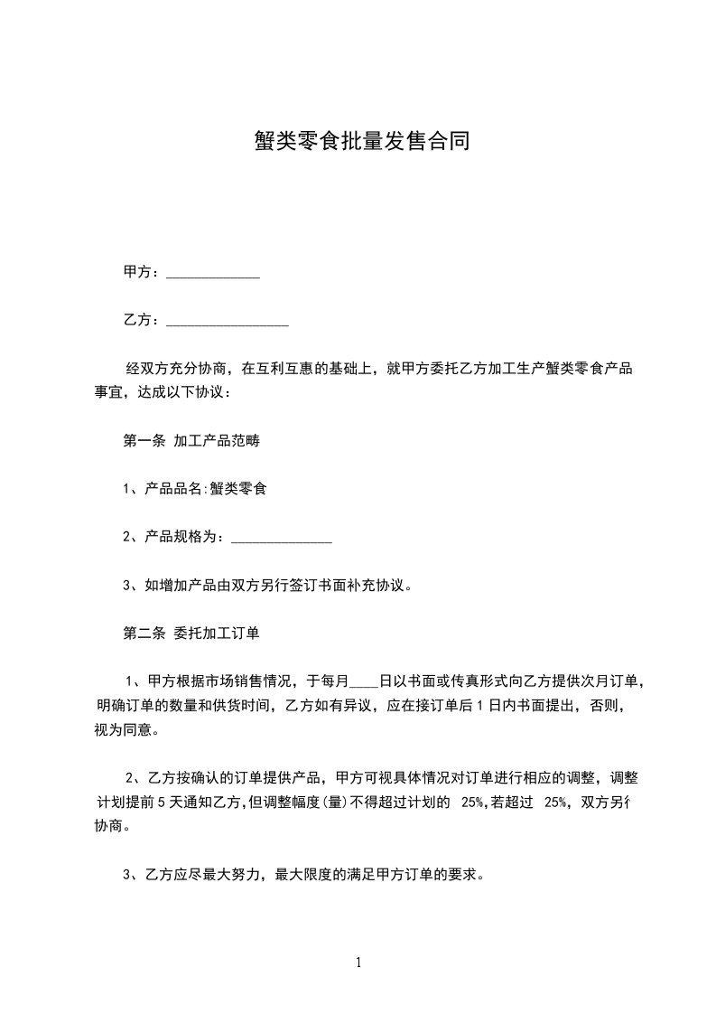 经双方充分协商,在互利互惠的基础上,就甲方委托乙方加工生产蟹类零食产品事宜,达成以下协议: