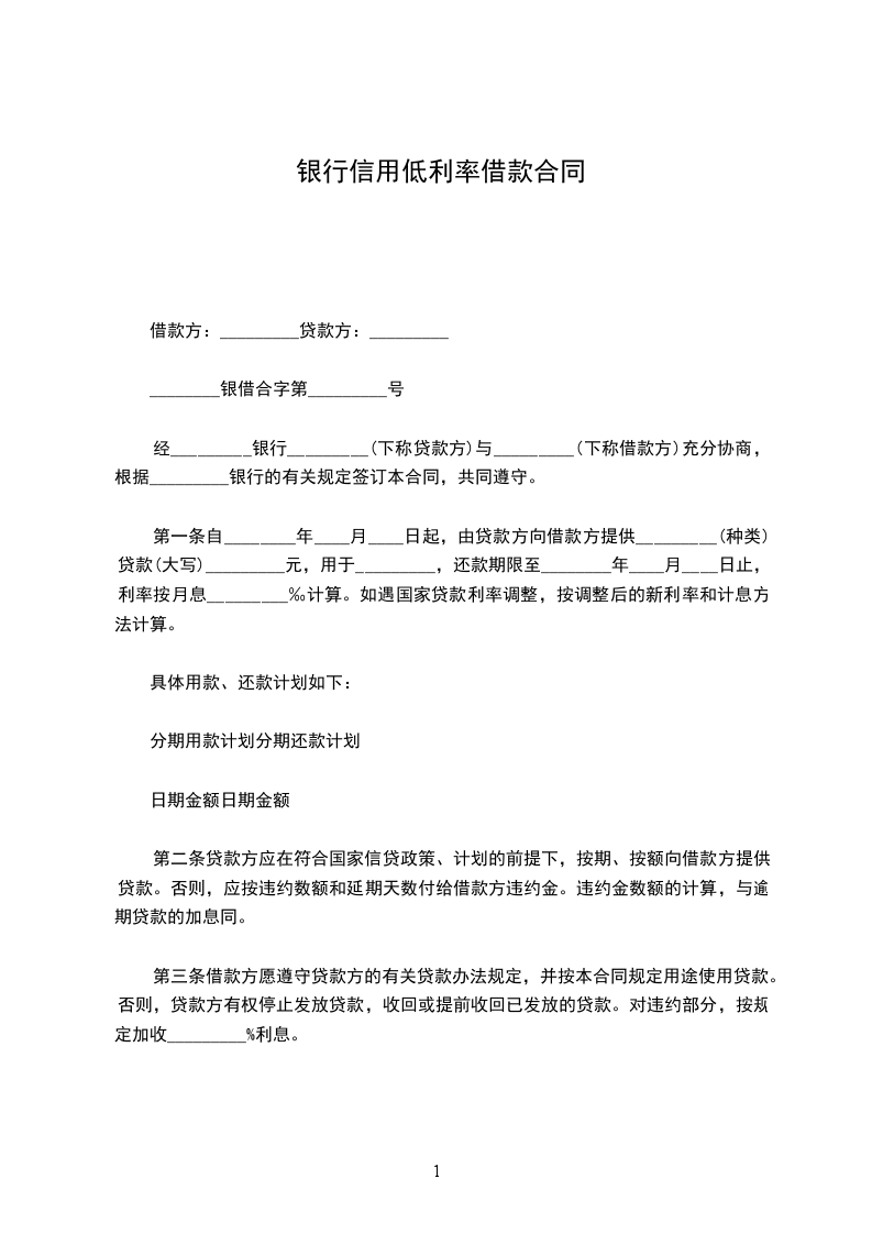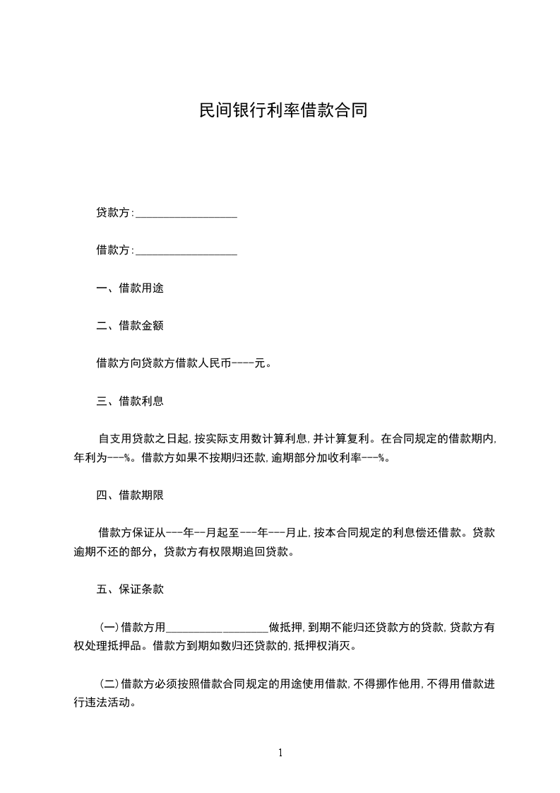 1. 固定利率:本合同项下贷款利率为固定利率,在合同有效期内保持不变。