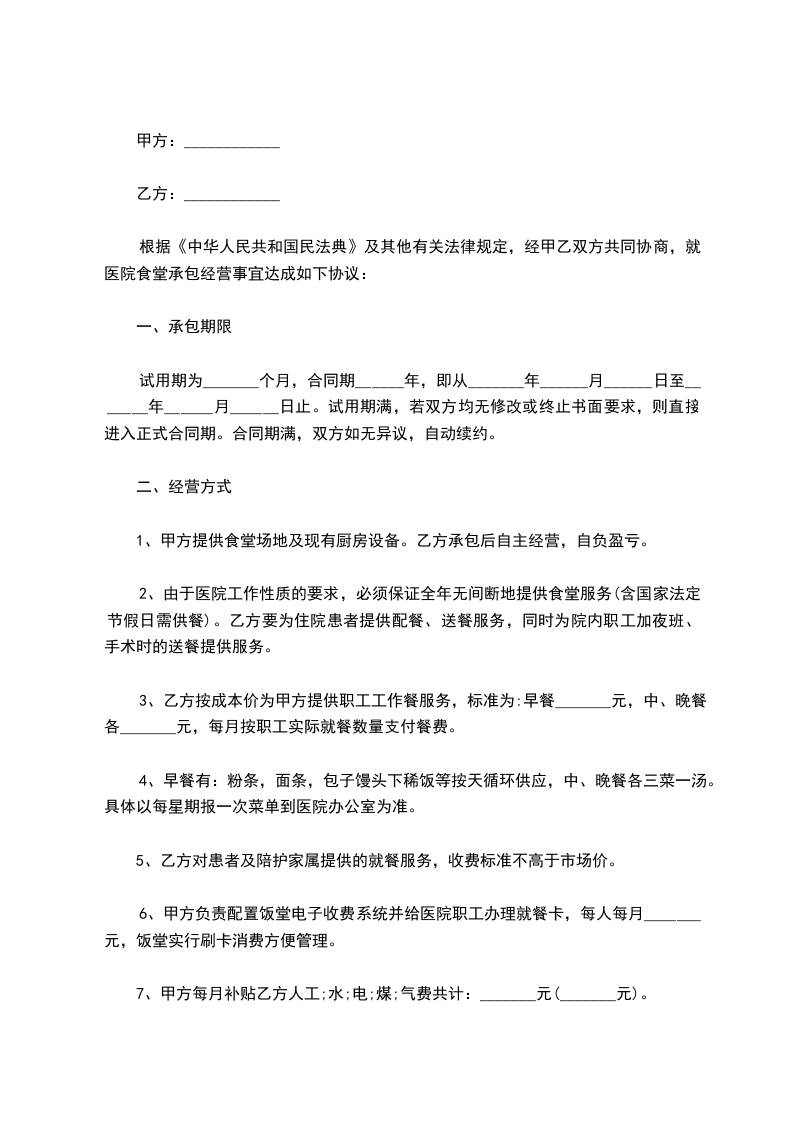 法定代表人:________________________为解决甲方职工就餐问题,甲方将单位职工食堂交乙方承包经营。甲、乙、丙三方经平等自愿协商,达成如下协议: