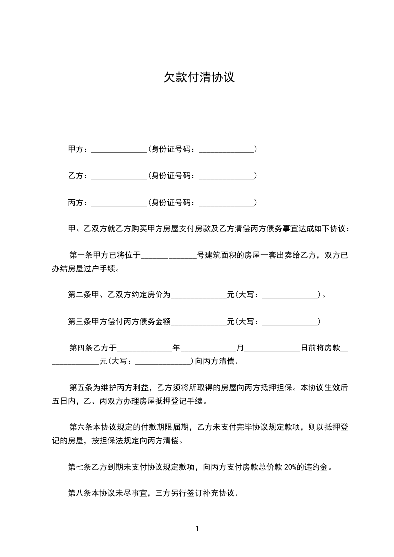 鉴于乙方曾向甲方借款/欠款,截至本协议签订之日,乙方尚欠甲方人民币______元(大写:______元整)。经双方友好协商,就乙方欠款结清事宜达成如下协议: