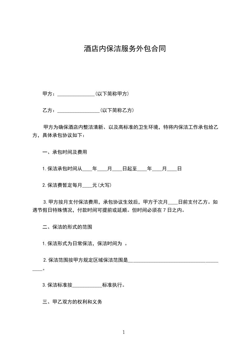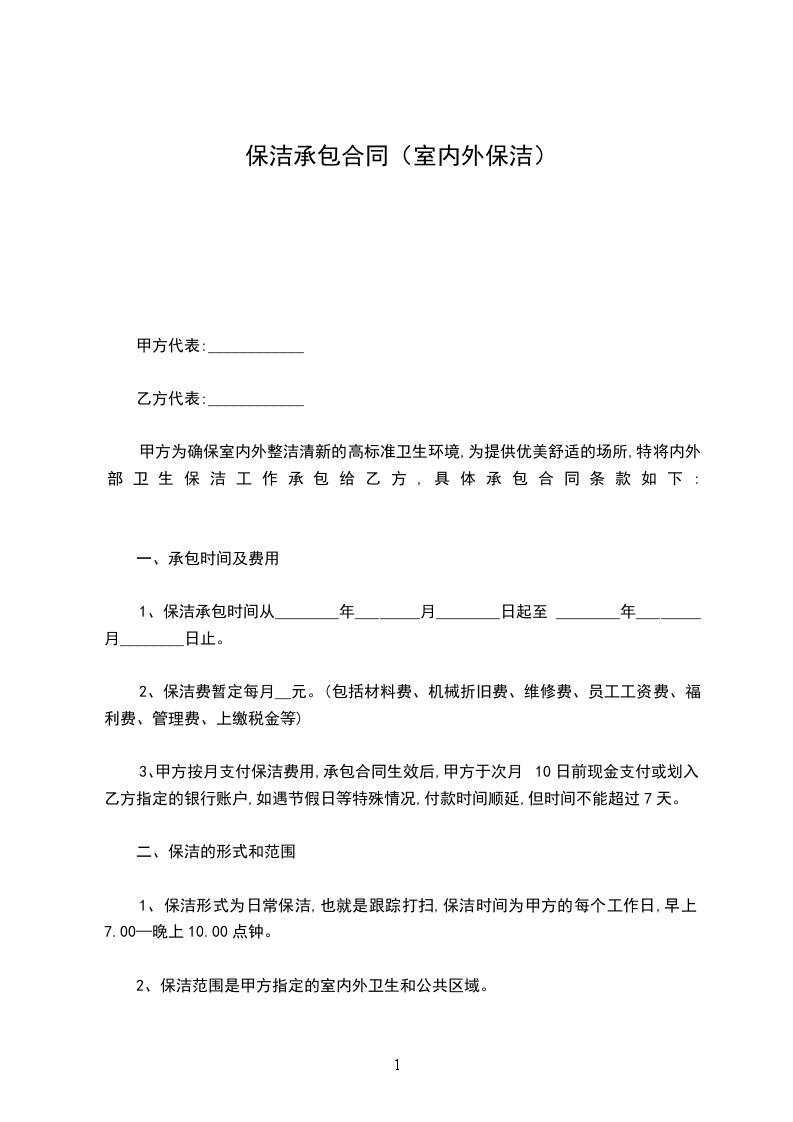 1. 乙方负责对甲方指定的区域进行日常保洁工作,具体区域包括但不限于:______________________(详细列出保洁区域)