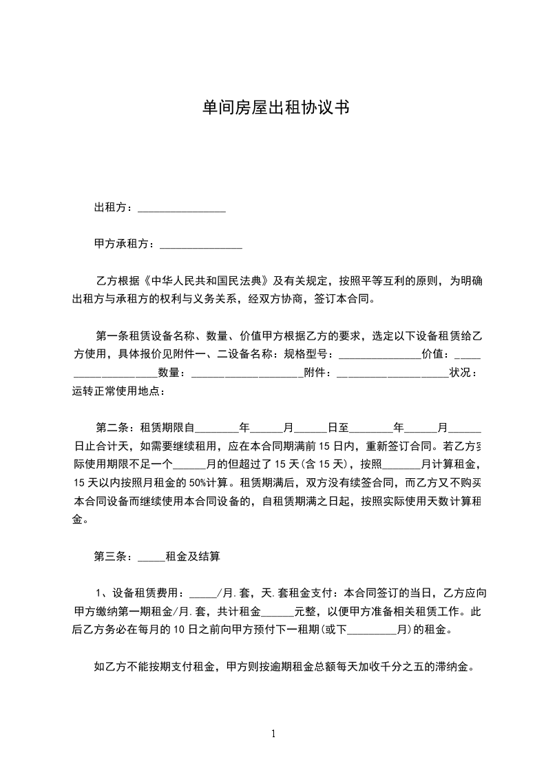 1、设备租赁费用:_____/月.套,天.套租金支付:本合同签订的当日,乙方应向甲方缴纳第一期租金/月.套,共计租金______元整,以便甲方准备相关租赁工作。此后乙方务必在每月的10日之前向甲方预付下一租期(或下_________月)的租金。