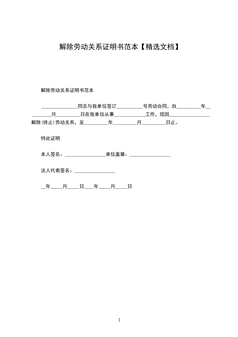 1、自_________________年_________________月_________________日起,解除双方签订的劳动合同,双方的权利义务随之终止;