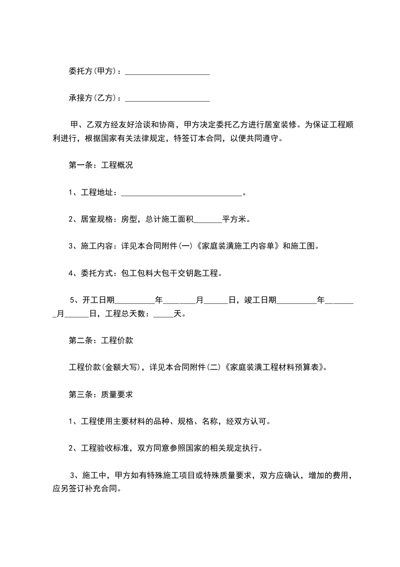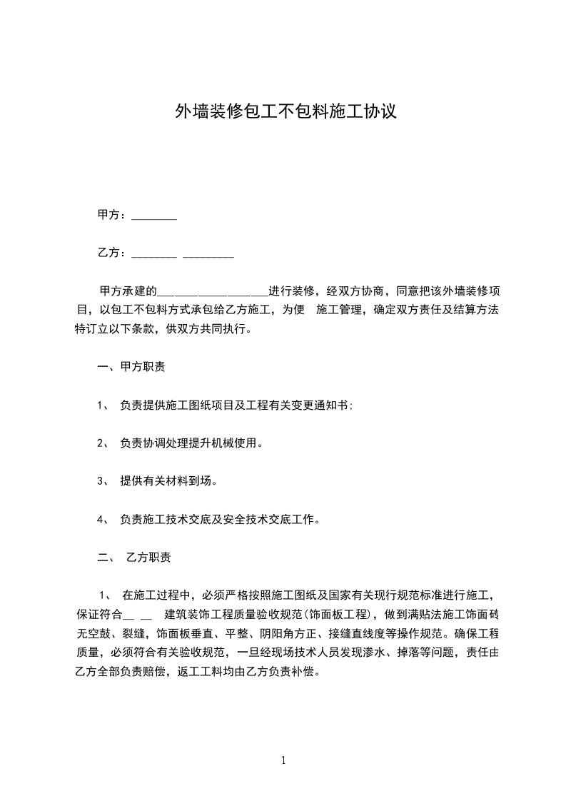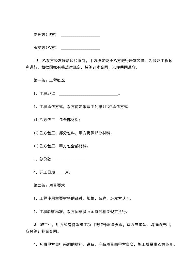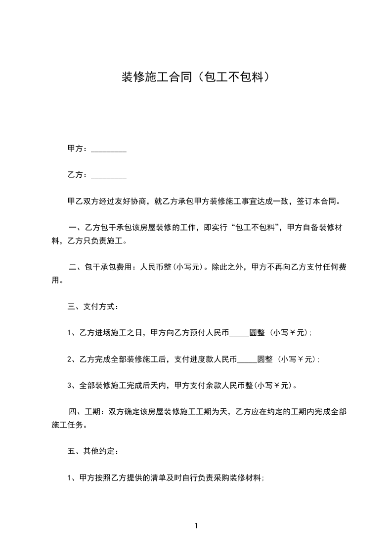 1、本工程采用包工不包料的形式承包施工(即包人工、包质量、包进度、包安全、包文明施工、包材料节约)。