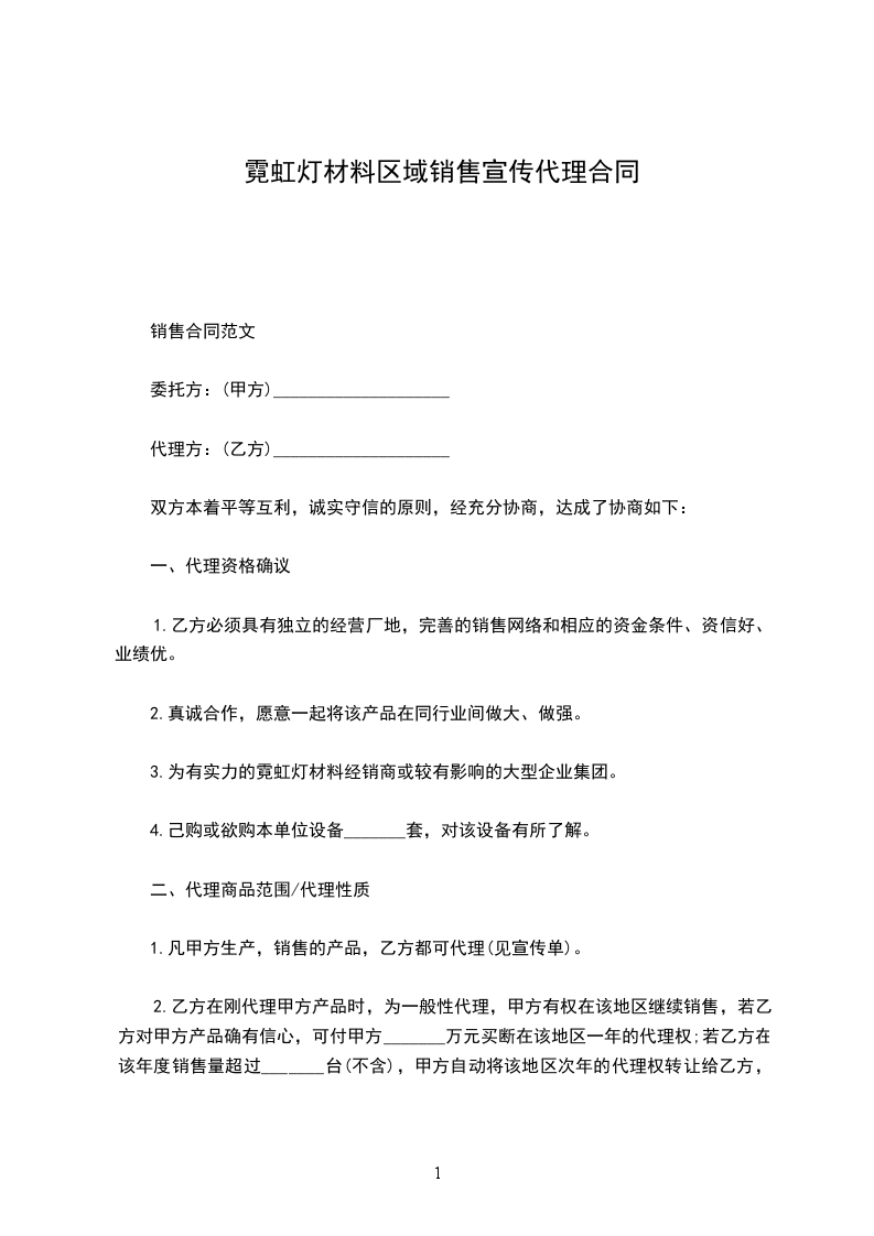 1.委托乙方在_______省_______市为(总代理/独立代理/一般代理),时间为_______年____月____日至____年____月____日。