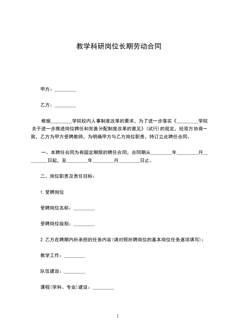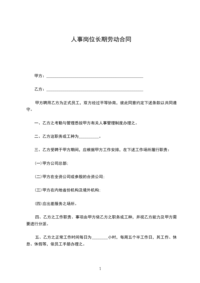 甲方根据工作需要,安排乙方在________工作岗位,乙方的工作任务为________,工作地点为________________。