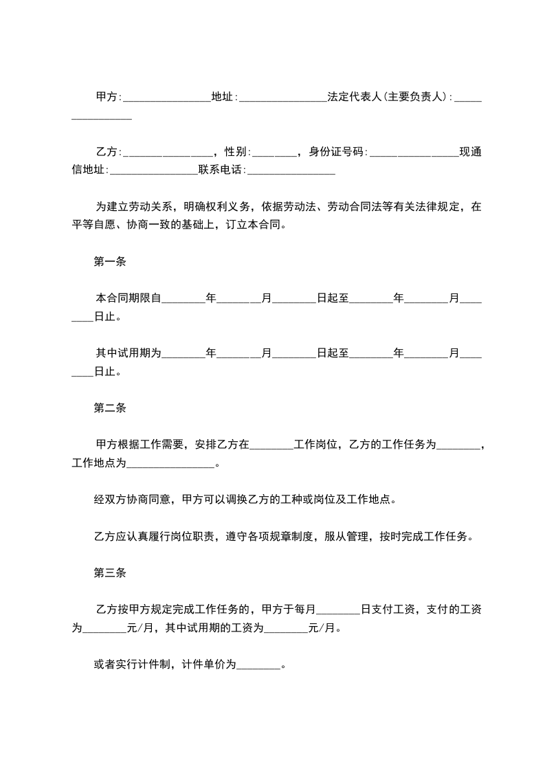 或者实行计件制,计件单价为________。